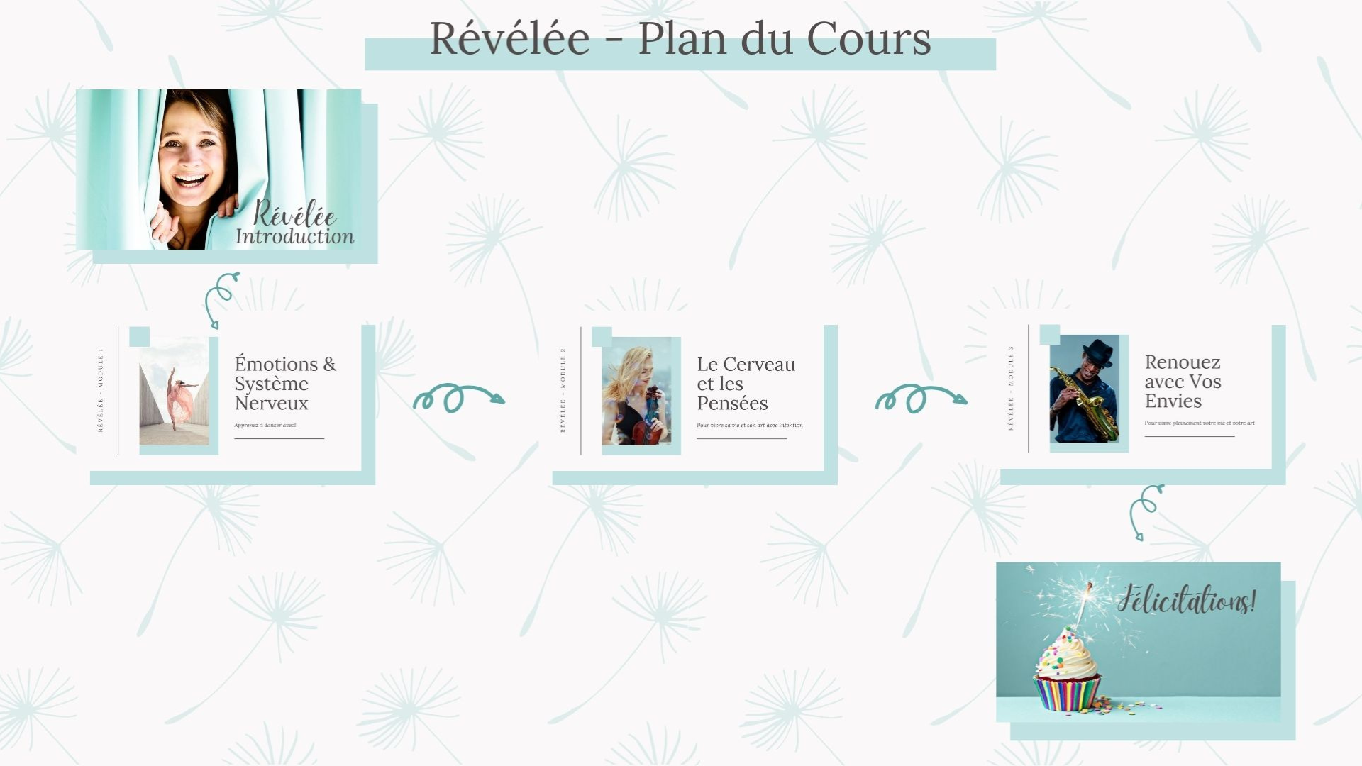 Dès votre inscription à cette rencontre et au cours digital “Révélée”, vous recevrez le premier e-mail de présentation du cours, accompagné de tous les documents nécessaires pour vous familiariser immédiatement avec son contenu. Le premier module vous sera ensuite envoyé, à raison d'une leçon par jour dans votre boîte mail (vidéos et documents éventuels), puis les modules suivants, selon un calendrier qui vous permettra de rester sur la bonne voie et de mettre en œuvre chaque module avec facilité et confiance.